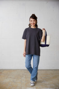 オープンエンドヤーンとはふつうの糸と違い、空気の流れで撚る糸の事です。 ワイルドな肌触りが魅力で、生地に重厚感が出ます。