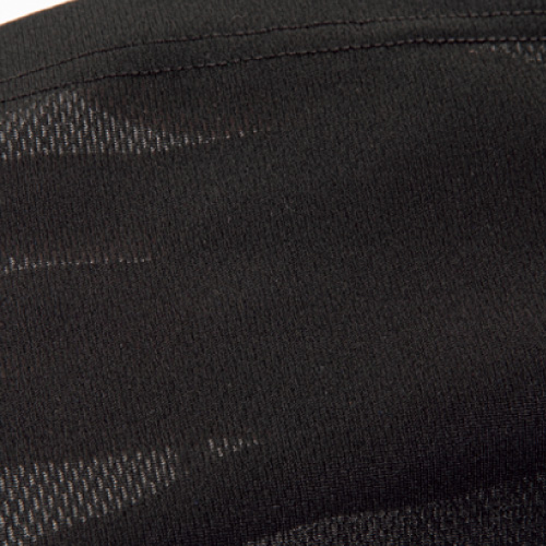 すべすべとした手触りで、軽く、摩耗に強い素材です。汗を逃がすドライ素材の材料としてよく用いられています。またしわになりにくい点が優れています。 ただし、高熱・高圧に弱いため、転写プリントにはあまり向いていません。