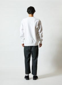 オープンエンド糸仕様のザラ感ある肌触り。厚手生地の風合いあるスウェット。