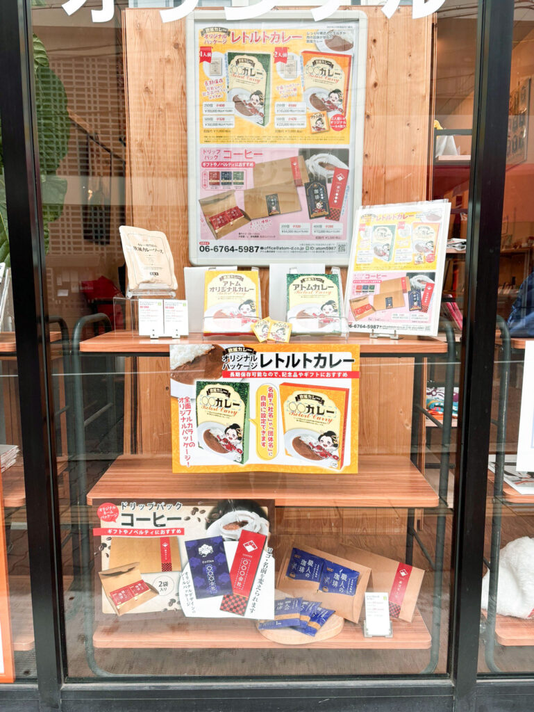 2月のグッズ店のディスプレイは、カレーとコーヒーの新商品です。