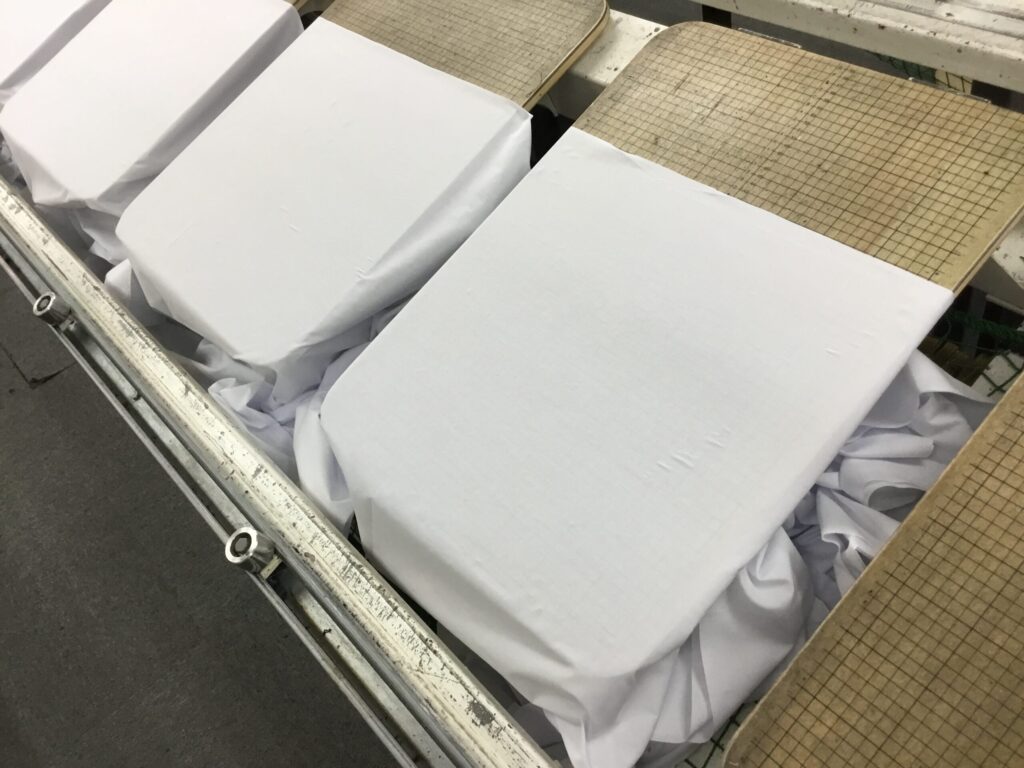 今日は、まだ服になる前の布の状態にプリントしました。